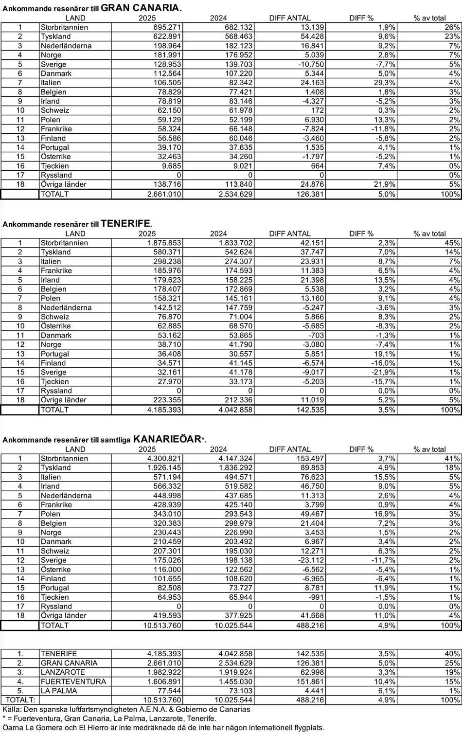 Nu skall i ärlighetens namn nämnas att siffrorna här intill gäller för ankommande, internationella turister från januari till och med augusti. Och flyg- trafiken från Norden från påsk och fram till vintersäsongens start i oktober är kraftigt reducerad. Detta trots att, framför allt, Norwegian flyger mycket från Norge. SAS och Norwegian trafikerar också från Stockholm och Köpenhamn, men i betydligt mindre skala. Och researrangörerna föredrar helt uppenbart Medelhavet framför Kanarieöarna på sommaren.