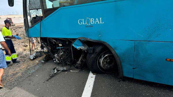 En allvarlig trafikolycka inträffade på torsdagsmorgonen på väg GC-500, nära Juan Grande, i kommunen San Bartolomé de Tirajana på Gran Canaria, före rondellen vid deponin. Olyckan ledde till att en person omkom, bilföraren, och två skadades allvarligt, bussföraren och en passagerare.