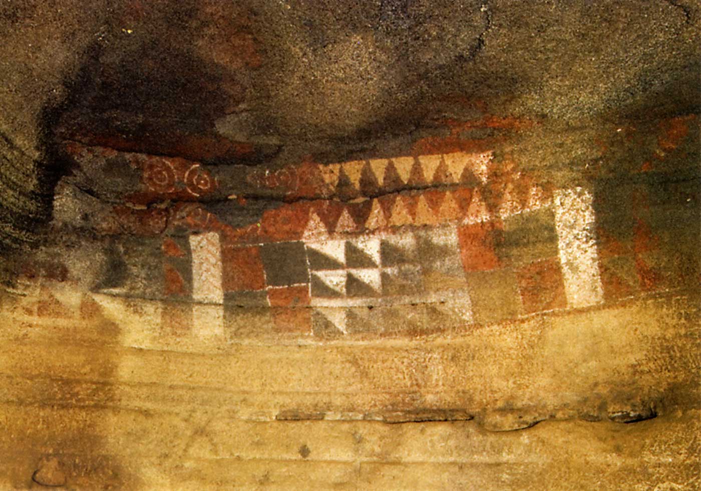 Målningarna är cirklar, trekanter, kvadrater och rektanglar – och antalet är alltid delbart med 12 på ett eller annat sätt. Därför tror man att målningarna har någonting med en kalender att göra. Men än så länge är det bara gissningar. Målningarna är gjorda i vitt, rött och grönt. Grottans väggar har tydligt perparerats innan man målade dem. Väggarna har putsats till för att färgen skulle fastna bättre och färgen har varit konstgjort uppvärmd vid målningen. Man bedömer att målningarna är 900 år gamla.