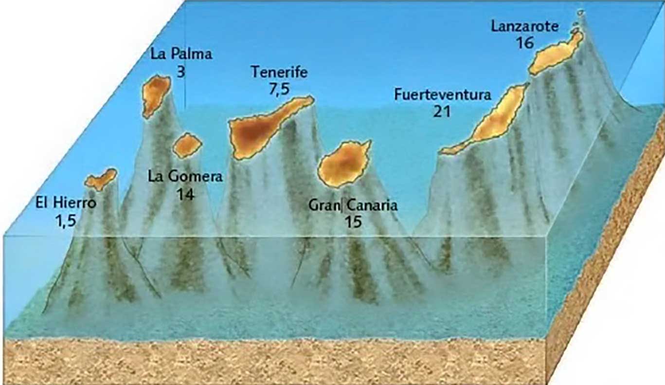 De kanariska öarna har samtliga ett vulkaniskt ursprung, som är relaterat till en sprickbildning, som sträcker sig från Atlasbergen. Sprickan går över den del av den afrikanska plattan på vilken Lanzarote och Fuerteventura vilar, och västerut över atlantbotten, och ändar vid El Hierro. Atlantbotten är som äldst ca 180 miljoner år. Öarna har bildats under tidsperiod för cirka 22 till 1 miljoner år sedan, där El Hierro är yngst. Både Gran Canaria (14,5 miljoner år gammal) och Tenerife (11,9 miljoner år) är ”uppstigna” ur havet genom undervattensvulkanism, vilken trängt igenom den relativt tunna havsbotten. Under hur lång tid den processen pågått vet man inte.