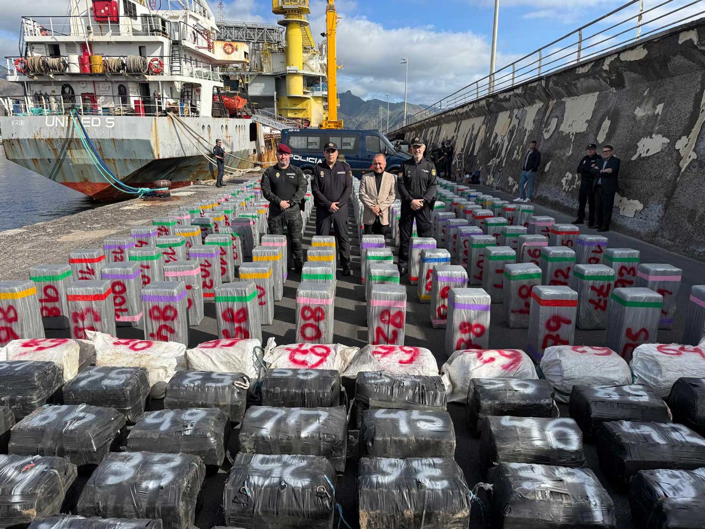 Den nasjonale politiet har gjennomført den største beslagleggelsen av kokain på åpent hav i politiets historie, med pågripelsen av et lasteskip som skjulte 9 994 kilo kokain blant mengder med salt. Lasteskipet som fraktet narkotikaen ble bordet på åpnet hav av agenter fra Geo, som arresterte de tretten besetningsmedlemmene og beslagla et skytevåpen i tillegg til narkotikaen. Etterforskningen og pågripelsen var et samarbeid mellom USA, Storbritannia, Brasils føderale politi, Citco og Maoc som alle deltok i operasjonen, skriver avisen Canarias7.